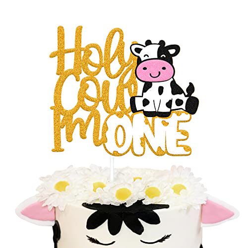 Holy Cow I M One Cake Topper Cow Theme Happy 1st Birthday Cake Decoration Kids Boy Girl S Cow One Year Old Birthday Party Glitter Supplies Walmart Com